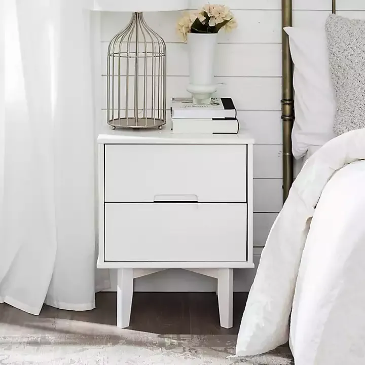Give any bedroom a fresh, retro upgrade! Our White Wood Cut-Out Handle Nightstand would make a perfect addition to a nursery, master, or guest room.