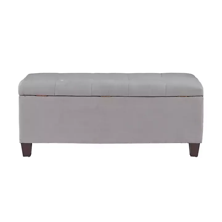 With tufted accents, our Amelia Tufted Gray Shoe Storage Ottoman Bench is the perfect fit for any space and any style! Its square sleek and chic design gives this versatile bench an endless amount of styling options!