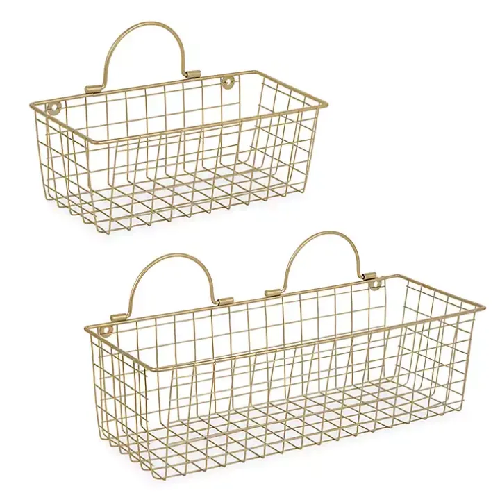 Add storage and style to your wall with this elegant basket set. The Antique Gold 2-pc. Wire Basket Set has the space and striking look your home needs.