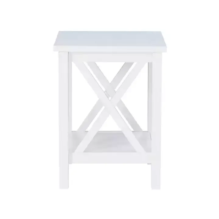 Add an elegant and interesting look to any space with this gorgeous accent table. The Antique White X Side Frame Accent Table creates an eye-catching style you’re sure to love and provides a shelf for additional storage or decoration options.