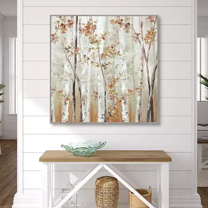 Get lost among the stunning trees of this Birch Wood III Framed Canvas Art Print. With warm, inviting hues, it will add a touch of natural beauty to any space!