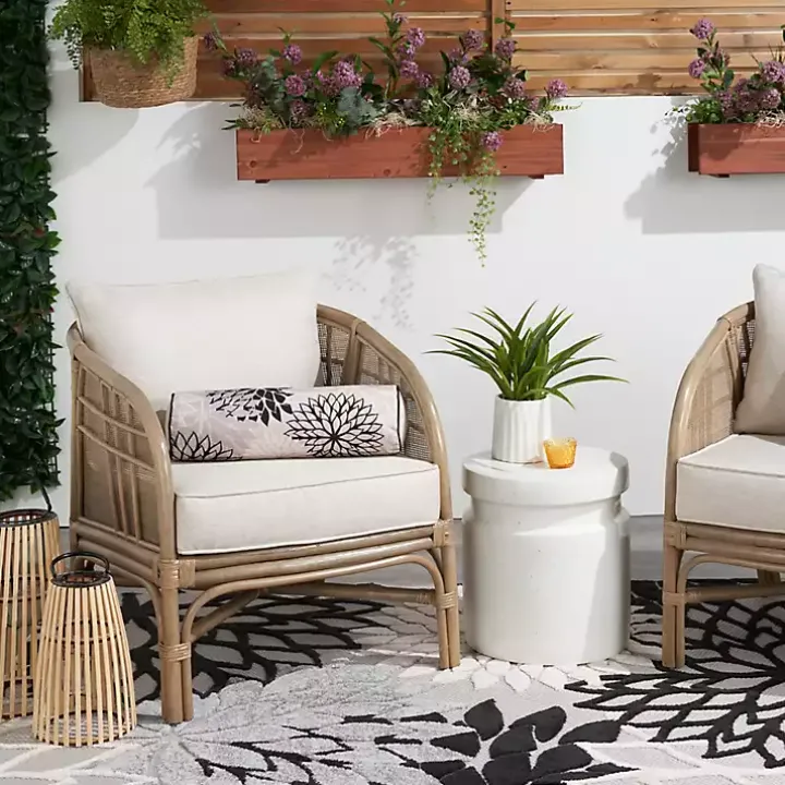 Keep your balcony oasis looking chic and inviting with this Black and Beige Floral Outdoor Bolster Pillow! You’ll love how this comfortable cushion completes your seating area.