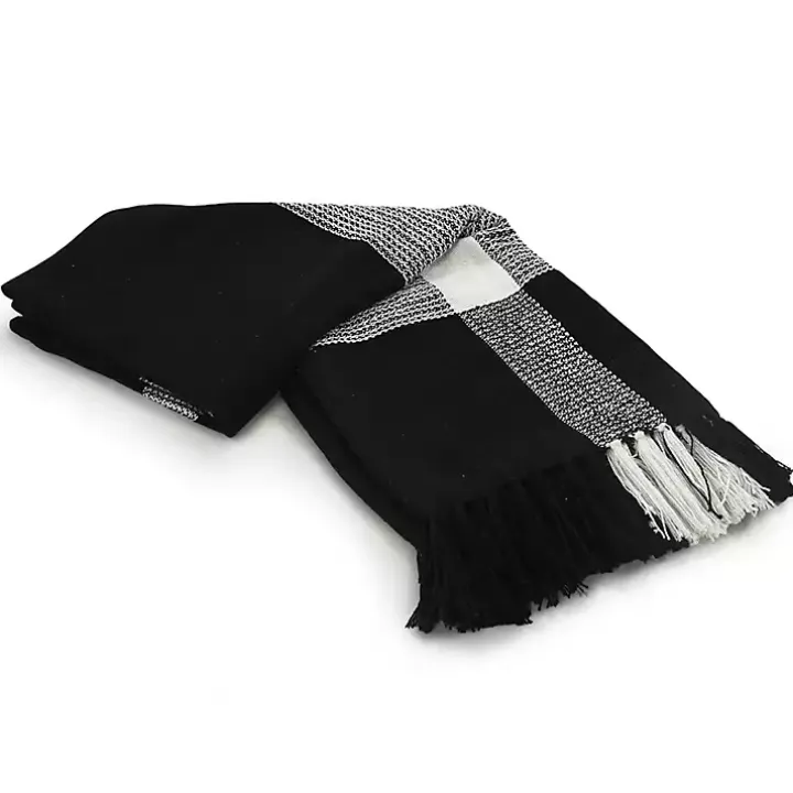 The Black and White Plaid Organic Cotton Throw features a comfortable, woven construction that’s perfect for year round use. The two-tone tassels add rich texture to any seat!