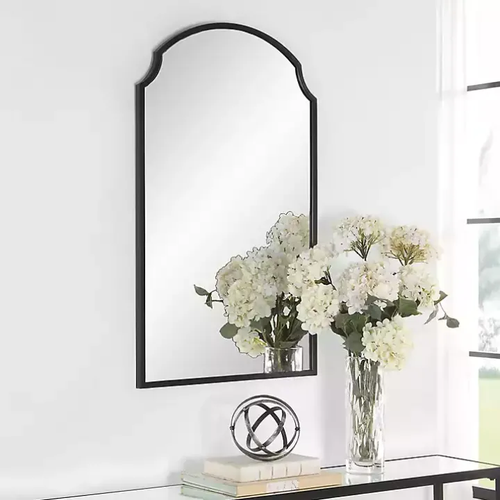 This Black Arched Scallop Edge Wall Mirror is the perfect blend of modern and traditional style! The arched scallop shape exudes a classic charm that will effortlessly elevate any space in your home.