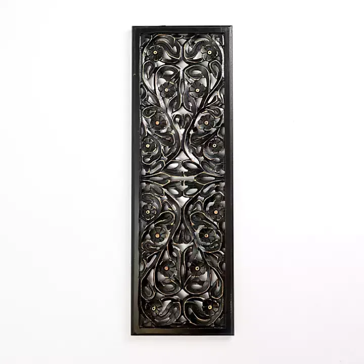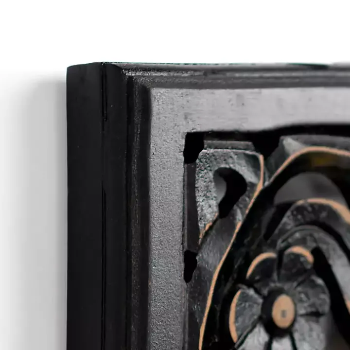 Add a unique floral element to your wall decor with this Black Floral Carved Wood Wall Plaque. Its ornate beauty will add a refreshing charm any room!