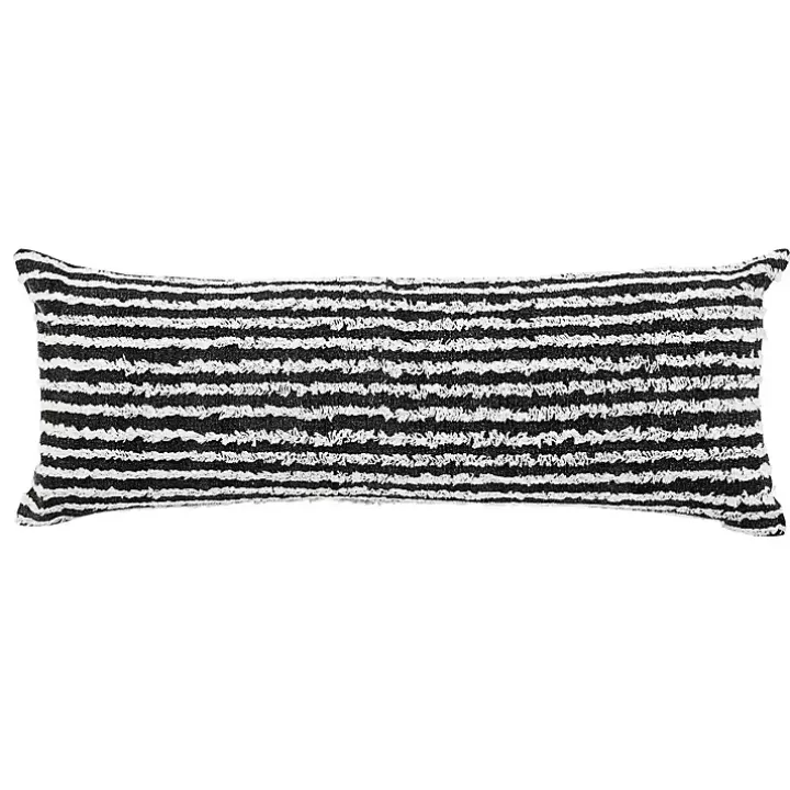 Our Black Wispy Ways Tufted Stripe Lumbar Pillow features raised fringe that adds texture to any space. Add this stylish piece to a bench, loveseat, or sofa!
