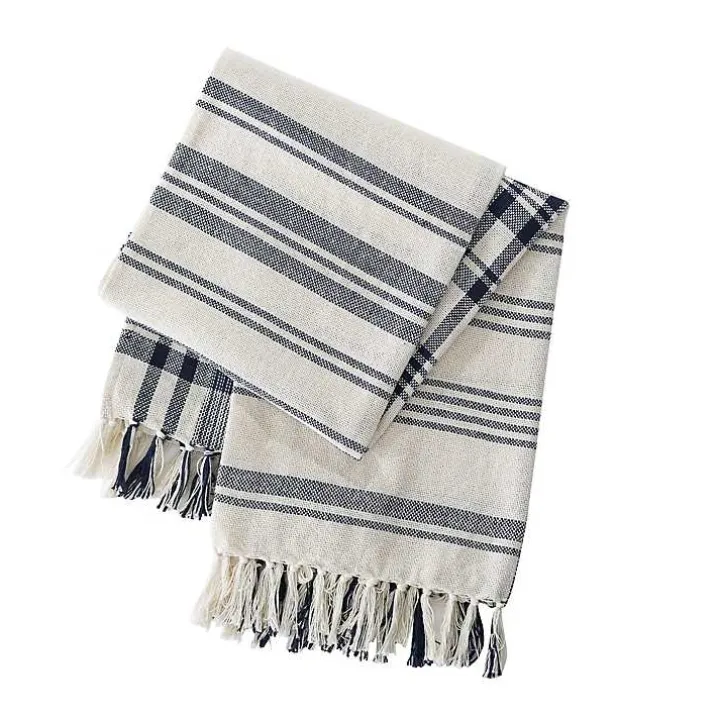 Blue and White Striped Tassel Throw