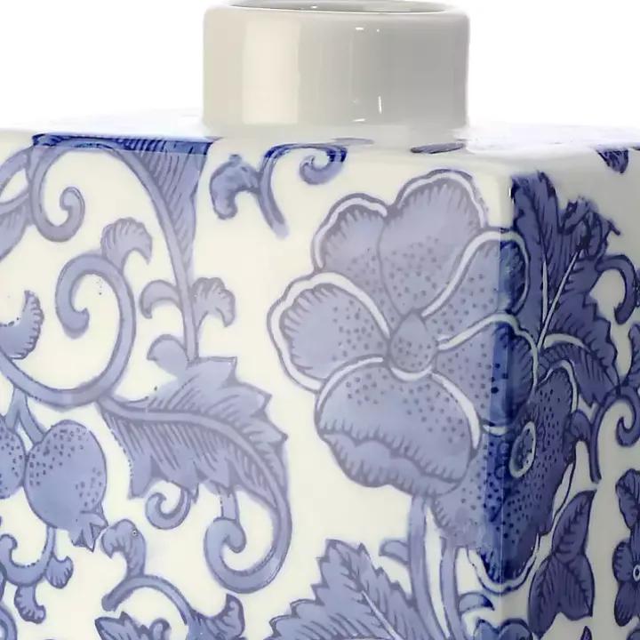 Elevate your space with the classic style of this Blue Floral Rectangle Vase. Its ornate design will add a touch of elegance to any shelf or accent table!