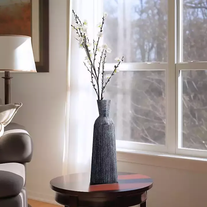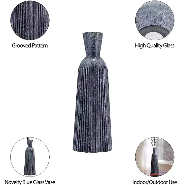 The Blue Grooved Glass Vase will make a lovely accent to your contemporary style home. Its unique color and texture make it a perfect modern piece for any space!