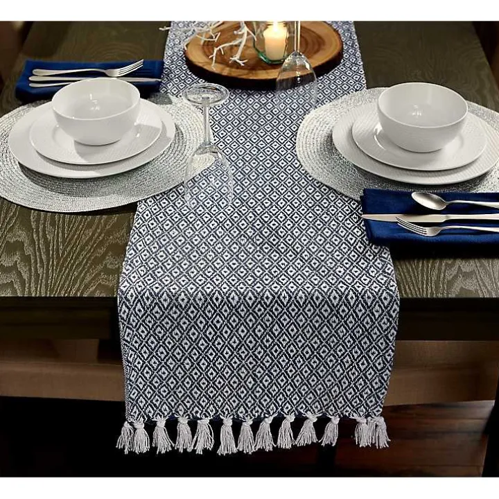 Our Blue Mini Diamond Fringe End Table Runner will serve anything from casual lunches to special dinners in chic style! You’ll love how the geometric patterns spruce up your dining table setting.