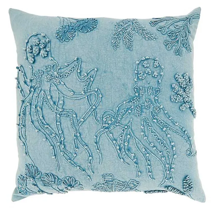 Dive into blue waters with this Blue Stonewashed Oceanic Octopus Throw Pillow! This pillow features embroidered details and a stonewash finish for an authentic coastal look. You’ll love the splash of color in your space!