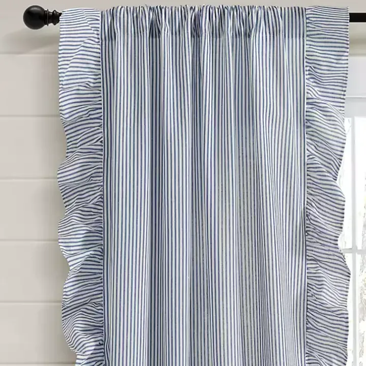 Freshen up any room with natural light and the lovely style of this Blue Stripe Ruffled Curtain Panel Set. Their quaint, ruffled accents are perfect for farmhouse or cottage decor