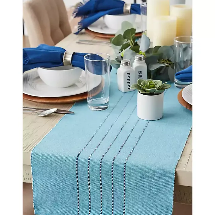 Set your table with elegance and style. The Blue Thera Stripe Table Runner is the perfect way to add a unique look to your table and impress your guests.