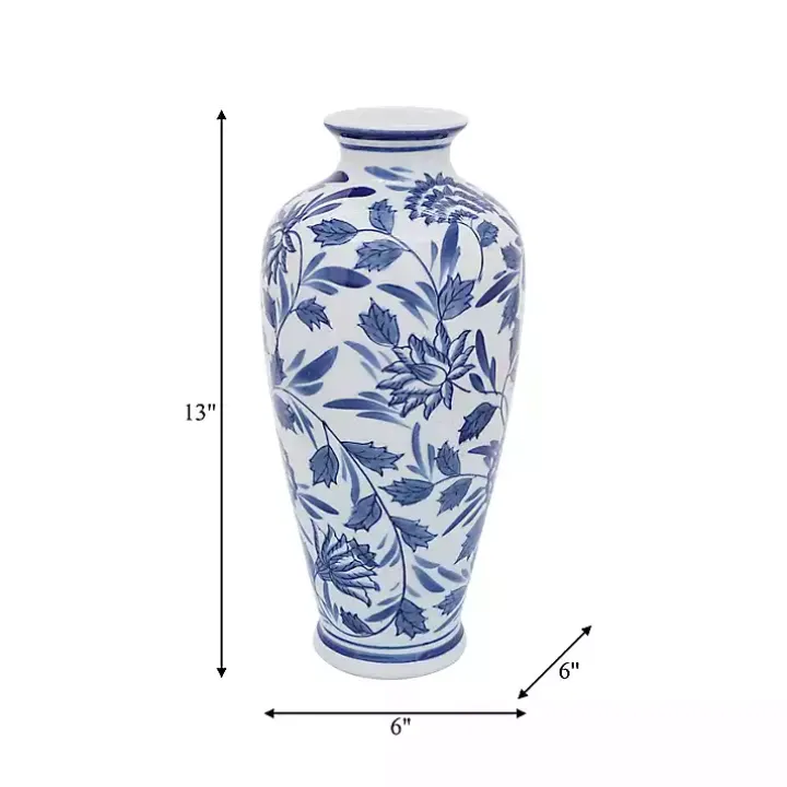 Give your space an elegant accent with this Blue & White Chinoiserie Ceramic Vase. Its classic Chinoiserie design makes it perfect for bringing a sophisticated touch to your home.