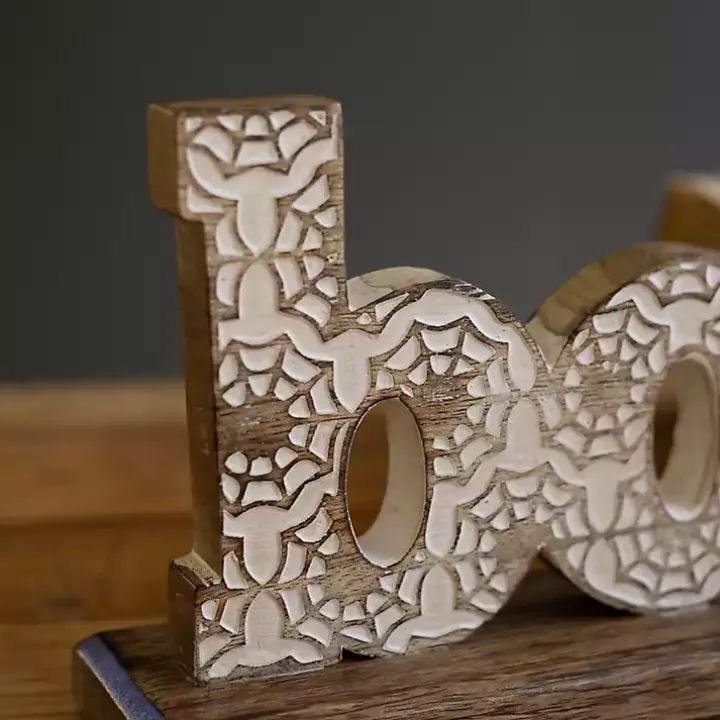 Put the final spooky touches on your haunted house with these Boo and Bat Wooden Figurines. The carved details will look great on your mantel or book shelf!