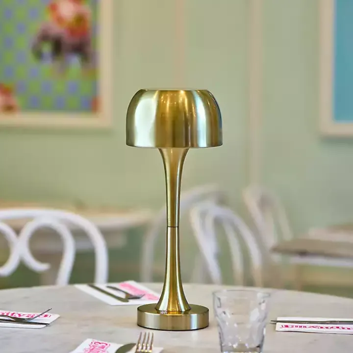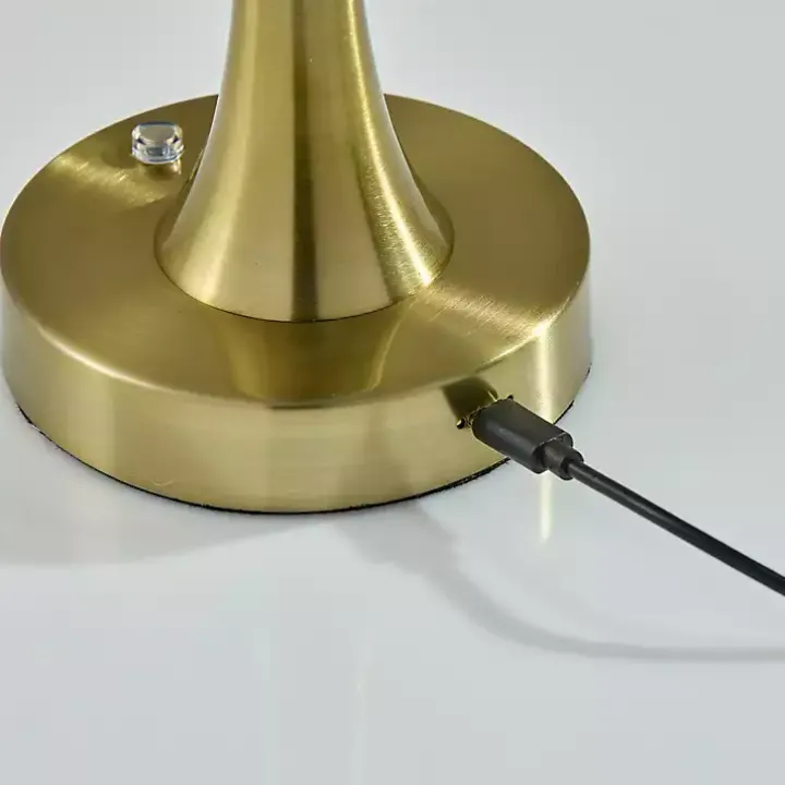 Create an inviting atmosphere anywhere with this Brass Tapered Dome Frosted Light Cordless Lamp! Set the mood with the dimmable, frosted light everywhere you go with the rechargeable bulb!
