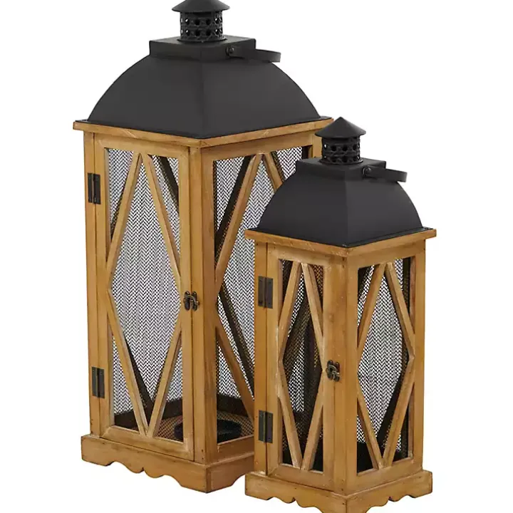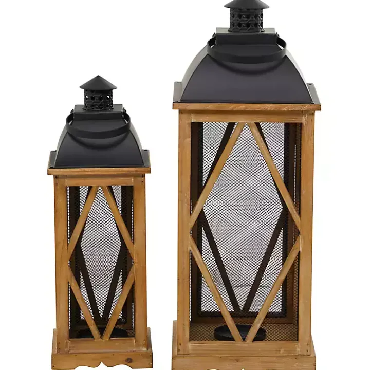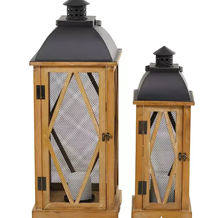 The set of Brown Wood and Black Mesh Lanterns will bring traditional charm to any space. Featuring metal rooftops and latched doors, they make a perfect home for your candles!