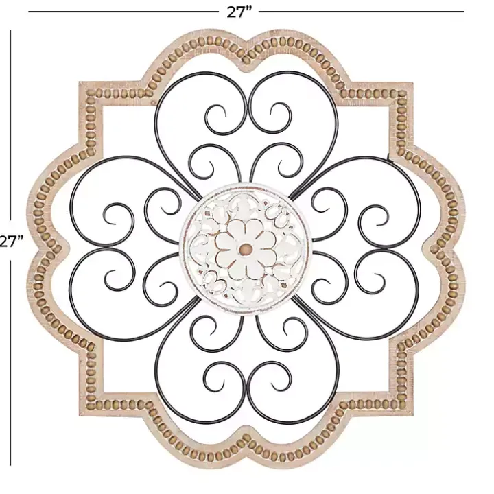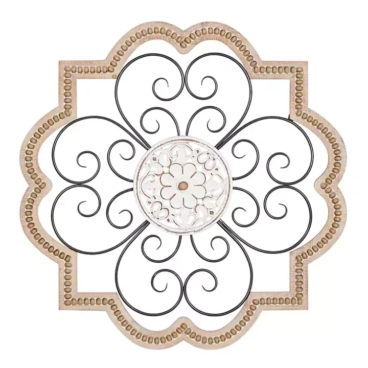 The Brown Wood and Metal Farmhouse Wall Plaque features a beautiful blend of curvy lines, floral detailing, and eye-catching texture. It will make a lovely centerpiece for your dining room.