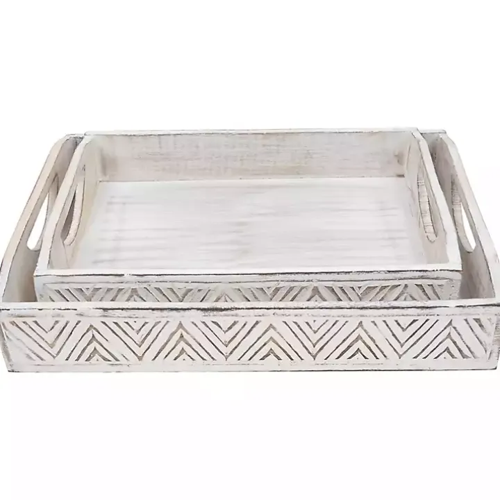 Keep your trinkets and accessories organized with the set of Brushed White Chevron Carved Trays. You’ll love how they lend rustic-boho charm to your home décor.