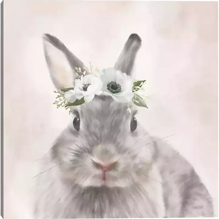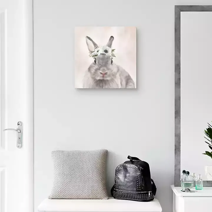 Hop into spring with this cheerful Easter decoration. The Bunny Flower Crown Easter Canvas Wall Art is a great way to decorate for the springtime season.