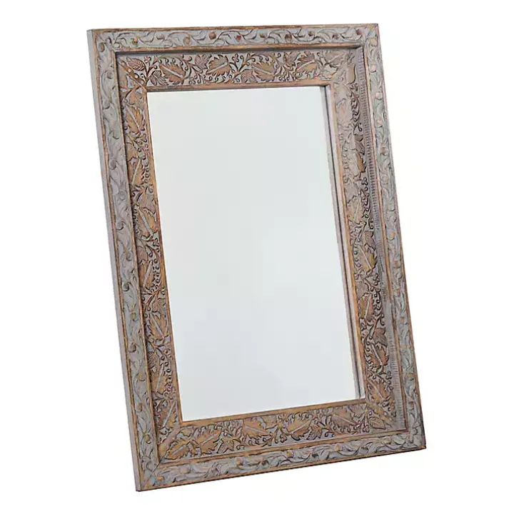 With our Carved Floral Mango Wood Mirror, your space can be the perfect combination of elegant and bohemian! You’ll love the way the engraved floral design pops from the gray frame.
