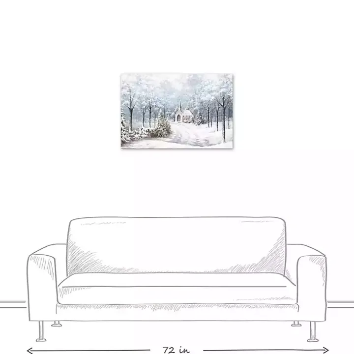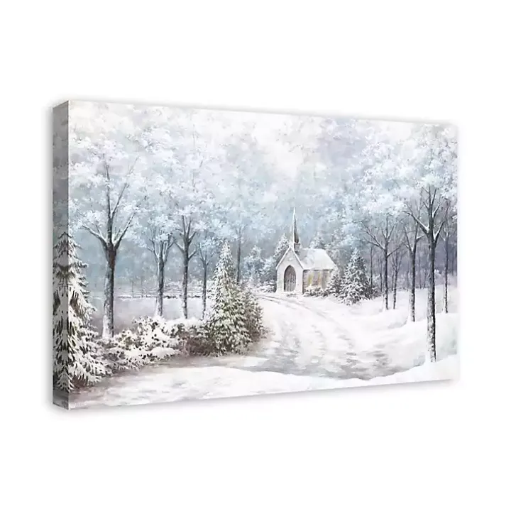 Our Chapel in a Winter Forest Canvas Art Print will have you feeling like you’re walking in a winter wonderland! This peaceful print will give your home a serene look and feel!