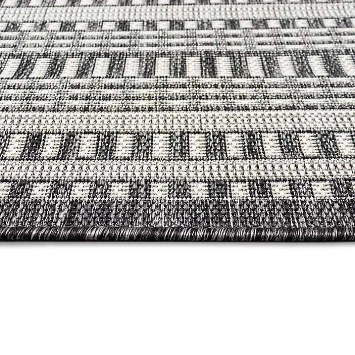 Refresh anywhere from your sunroom to your patio using this Charcoal Linear Macy Indoor/Outdoor Area Rug. Featuring contrasting hues and multiple border patterns, this rug makes a bold statement in any lounge space!