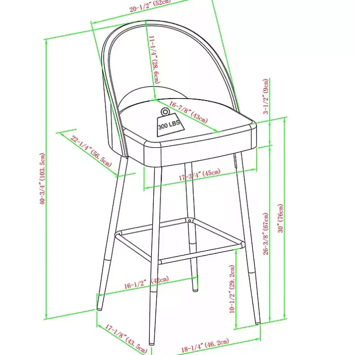- Stool measures 40.75L x 22.25W x 40.75H in.; seat measures 30H in.