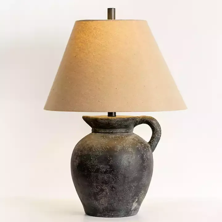 Give your home a classic touch with this Charcoal Vase Table Lamp. Its weathered, textured finish gives an antique look to its handled, faux vase base.