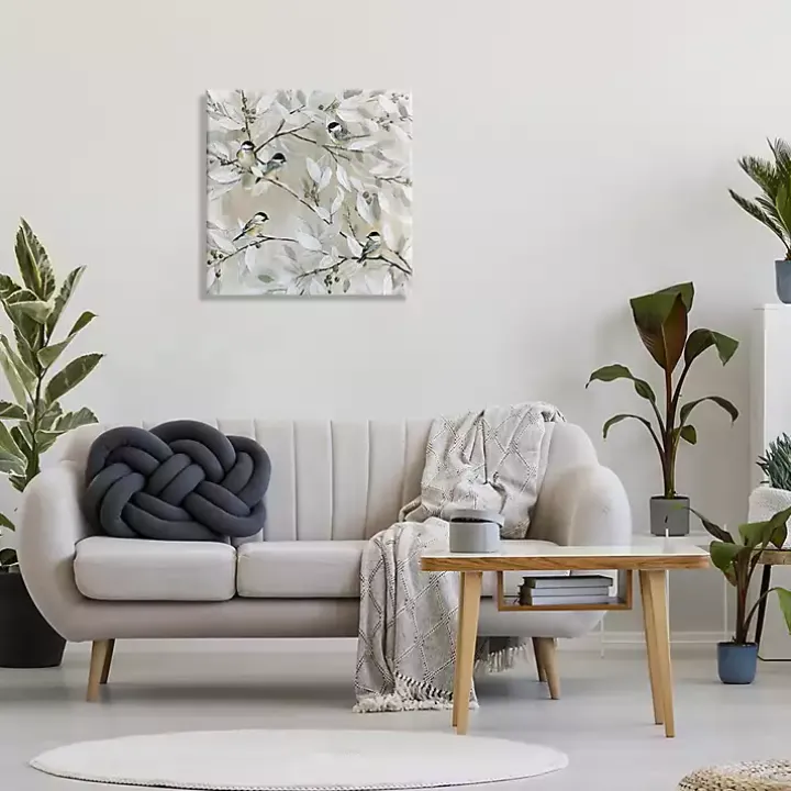 Bring a romantic view of nature into your home with this Chickadee Birds on Branch Canvas Art Print. While it makes a lovely statement, the natural tones will seamlessly blend into your space.