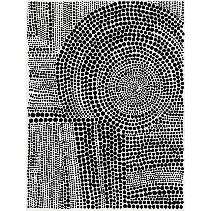 - Features abstract clustered dots subject