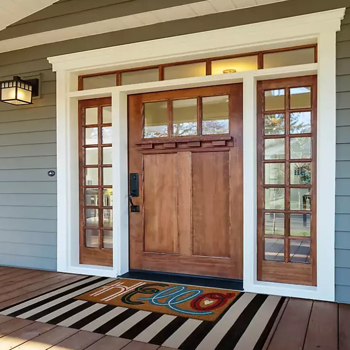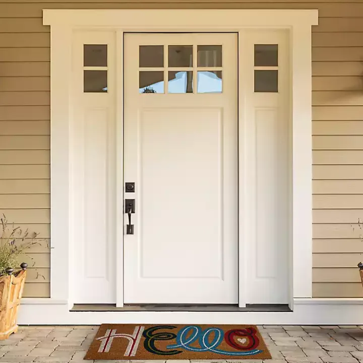 Add a stylish accent to your porch that’s both welcoming and practical! Featuring a looping font, our Colorful Hello Coir Doormat is an adorable place to wipe your shoes.