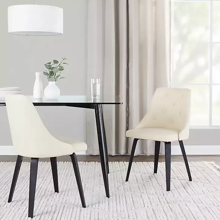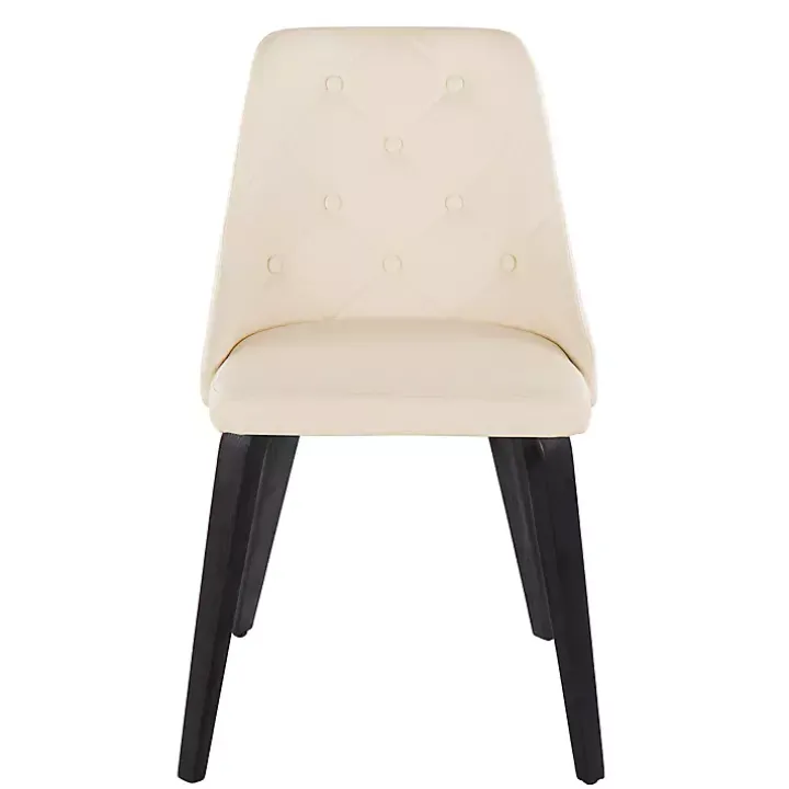 These Cream & Black Faux Leather Dining Chairs are detailed with button tufted backrests and bent legs, striking the perfect balance between modern and traditional style.