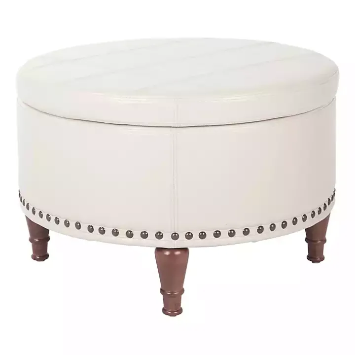 Add to your traditional home décor with our Cream Leather Antique Nailhead Storage Ottoman! This ottoman has antique nailhead accents and a beautiful cream upholstered finish. You’ll love how much storage this ottoman provides for extra blankets, pillows, or whatever your space needs!