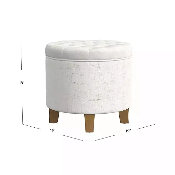 Complete the look of your living space with this Cream Woven Upholstered Tufted Storage Ottoman! Not only does this ottoman have a sophisticated design, it can help you keep your home neat and tidy!