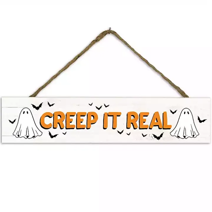 With ghost and bat accents, this Creep It Real Hanging Wall Plaque is the perfect addition to your haunted house. Its cheeky design will add a touch of fun to your Halloween decor!