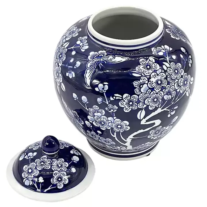 Elevate your space with the classic, ornate style of this Dark Blue Floral Chinoiserie Jar. Its beautiful charm will instantly transform any shelf or accent table!