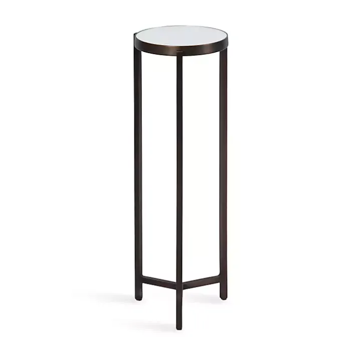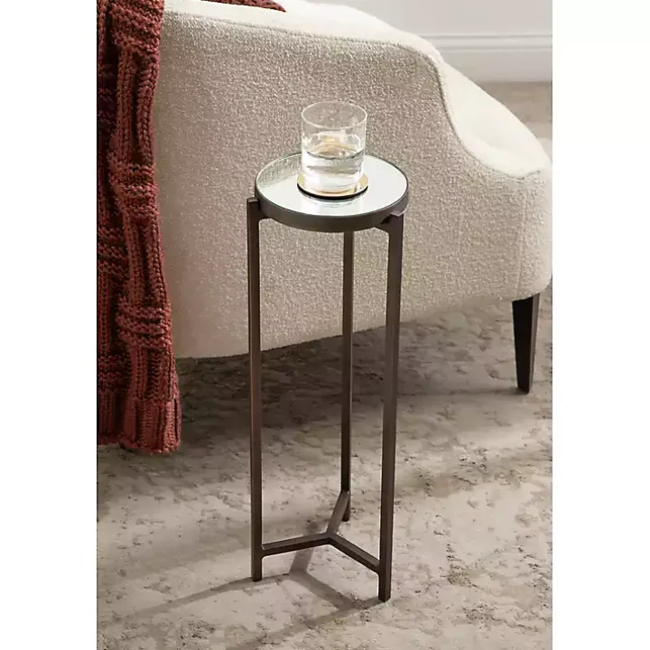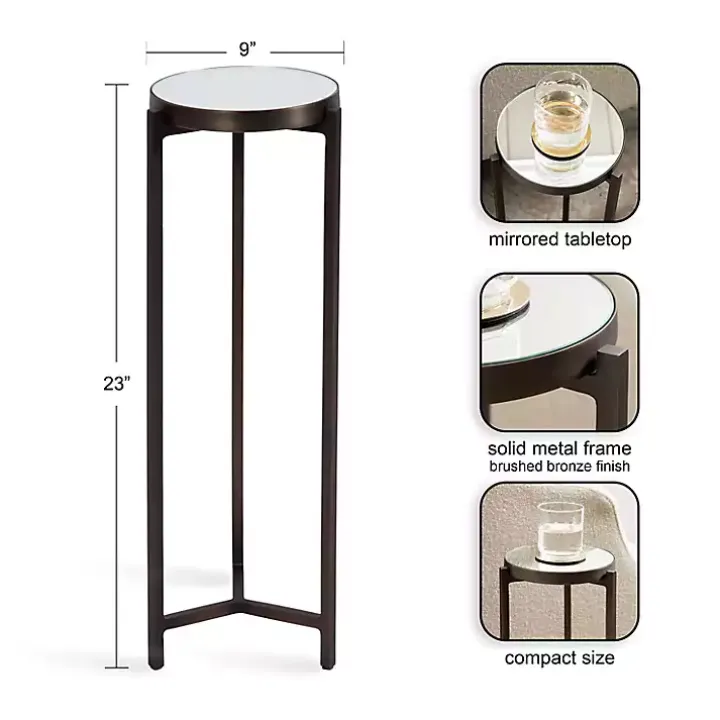 Inspired by modern design, this Dark Brown Mirrored Tabletop Aguilar Drink Table features a frame with clean, simple lines and a brushed bronze finish. This drink table is crafted with a unique mirrored tabletop and sturdy metal frame to serve as a quality, refined accent piece.