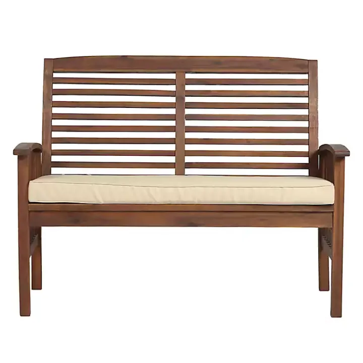 This Dark Brown Acacia Wood Loveseat Bench with Cushion is the perfect resting place for your porch. Its classic slatted design will complement its surroundings without stealing the show.