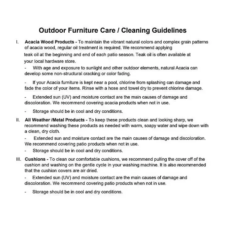- Care: See “Care Instructions” section below. Safe for outdoor use.