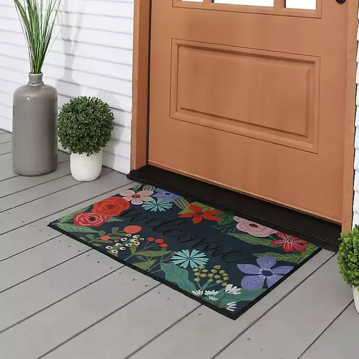 Greet your guests in style with our Dark Floral Welcome Rubber Doormat! This cheerful and romantic doormat is the perfect way to update your front doorway.