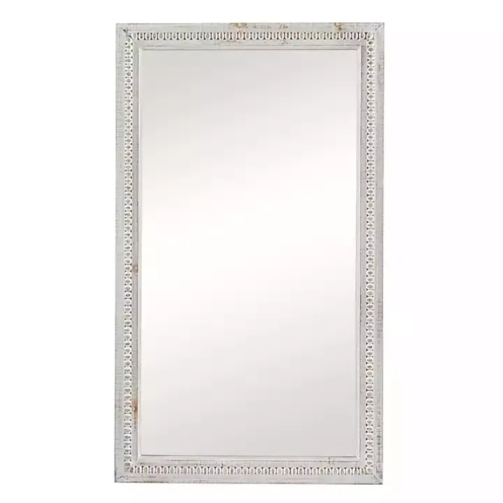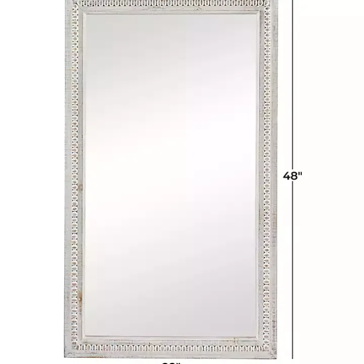 <meta itemprop="description" content='The natural whitewashed wood and beaded details make our Distressed White Wood Carved Frame Wall Mirror perfect for a farmhouse or boho style home! You'll love displaying this mirror in your entryway or living room for a touch of style and sophistication. Mirror measures 28L x 1.30W x 48H in.Frame crafted of pine woodDistressed white finishRectangle shapeCarved beaded frame accentsWeight: 21.8 lbs.Hangs from back-mounted hardwareCare: Dust with a soft, dry cloth. To clean mirror, spray a small amount of glass cleaner onto a lint-free cloth and wipe clean.This item is available at Kirklands.com only, not available in stores. Please note: this item cannot be shipped to APO/FPO addresses.WARNING:Cancer and Reproductive Harm – For more information go towww.P65Warnings.ca.gov .
