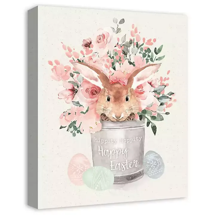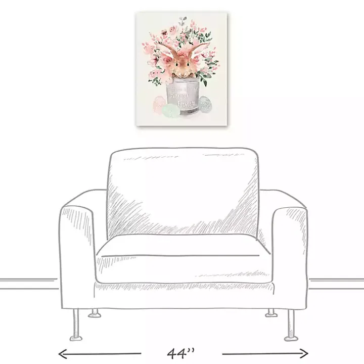 Usher in spring with this Easter Bunny Bucket Canvas Art Print. With its lovely pink florals and sweet bunny, it makes the perfect Easter decoration!