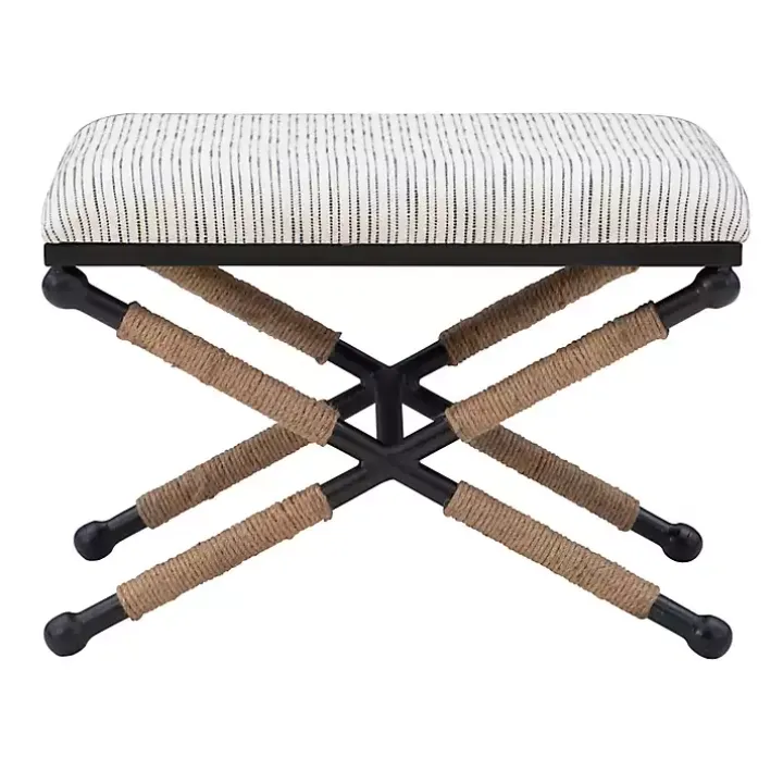 Add a stunning new look to any home with this bench. The Eclectic Black and White Striped X Frame Bench has a versatileand eye-catching look that will complement both modern and traditional living spaces.