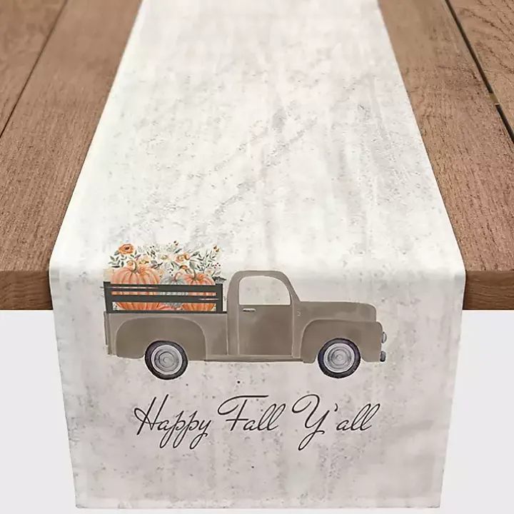Nothing says fall like crunchy leaves, a cool breeze, and festive harvest decorations on your table. The Fall Ya’ll Pumpkin Truck Harvest Table Runner is perfect for Thanksgiving or any fall dinner parties.