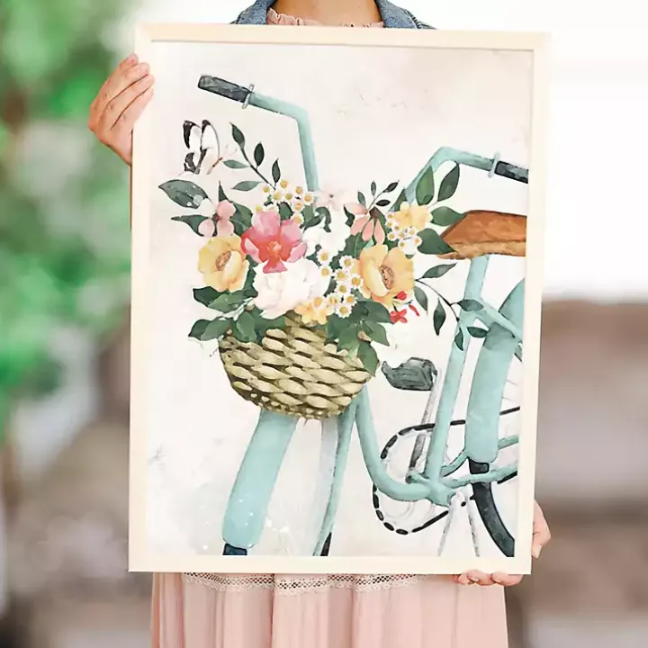 With a bright, blossoming bouquet, this Floral Bike Basket Framed Art Print will bring a bit of summer into your home. Its watercolor style will puts a quaint charm on any wall!