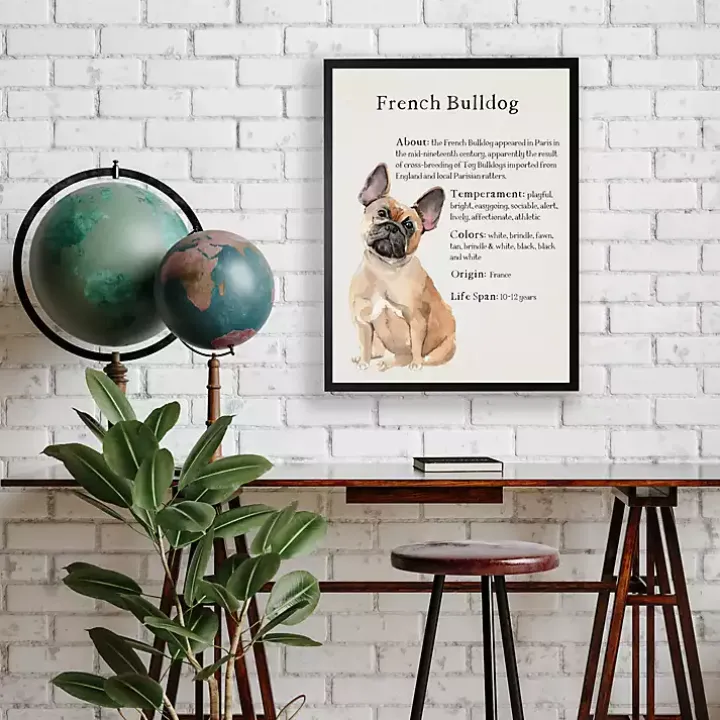 Include your favorite furry friend in your home decor with this French Bulldog Facts Framed Wall Plaque. Its adorable design also makes a perfect gift for any Frenchie owner!