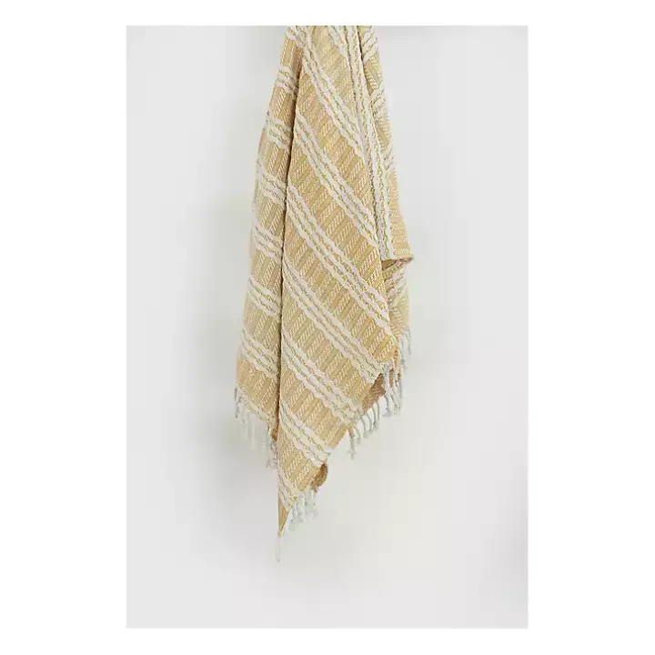 Add a cozy touch of style to your space with this Gold and Ivory Striped Cotton Throw. Its soft, boho design is perfect for cuddling up with a good book or movie!