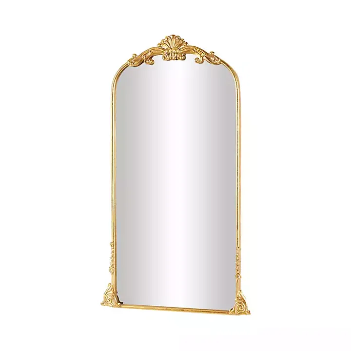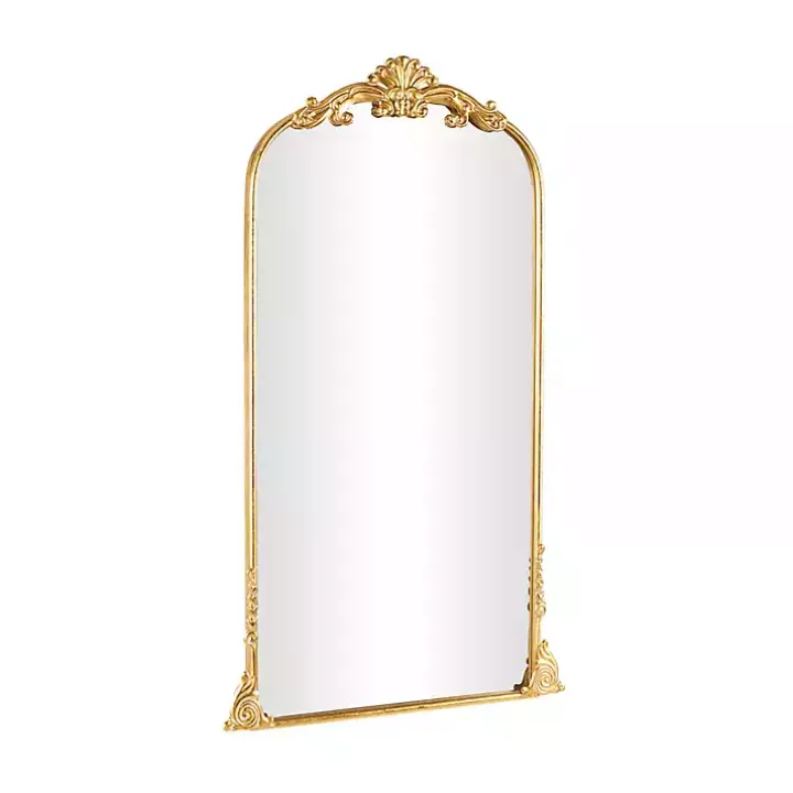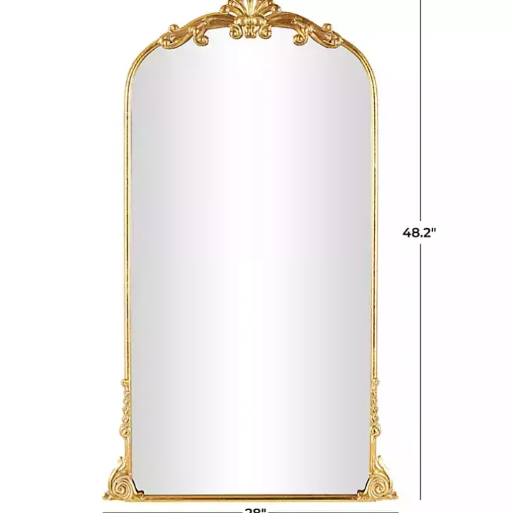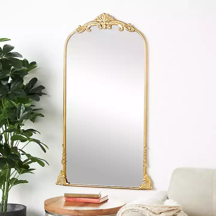 Elevate your entryway, hall, or bedroom with this Gold Arched Baroque Mirror. Its golden elegance is sure to bring a timeless beauty to your home!