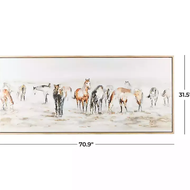 Add a free-spirited charm to any space with our Gold Foil Wild Horses Framed Canvas Art Print! Featuring peaceful horses with hints of gold, this print is perfect for a modern farmhouse home. Animal lovers will adore this extra large print above their bed, mantel, or console table!
